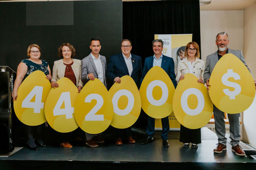 Cette somme totale fut possible grâce à la vente des 500 billets, aux profits d’un encan interactif présenté par Olymel (33 000 $) et d’un tirage, en plus d’un don majeur de Sobeys s’élevant à 190 000 $, résultat d’un an d’initiatives internes.