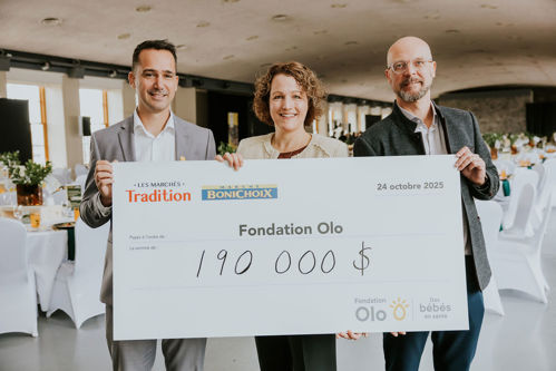 Partenaires de la Fondation Olo depuis 2016, Les Marchés Tradition et Bonichoix continuent d’incarner la force de la solidarité locale. En 2025, leurs nombreuses initiatives de collecte de fonds ont permis d’amasser la somme remarquable de 150 000 $ pour la santé des tout-petits et de leurs familles. Ce résultat témoigne d’une mobilisation exceptionnelle et de l’engagement des marchands et de leurs communautés partout au Québec.
